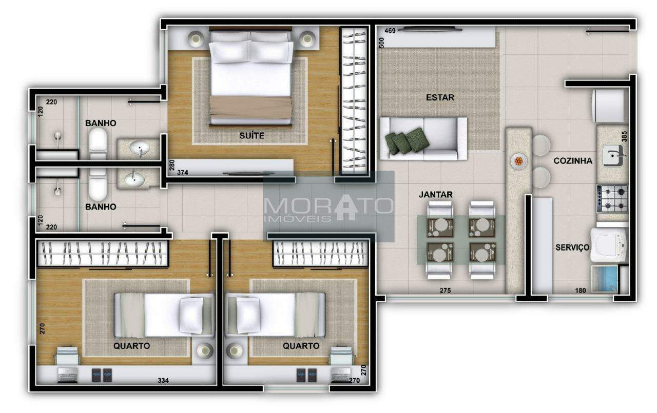 • Sala e corredores entregues com piso em porcelanato,