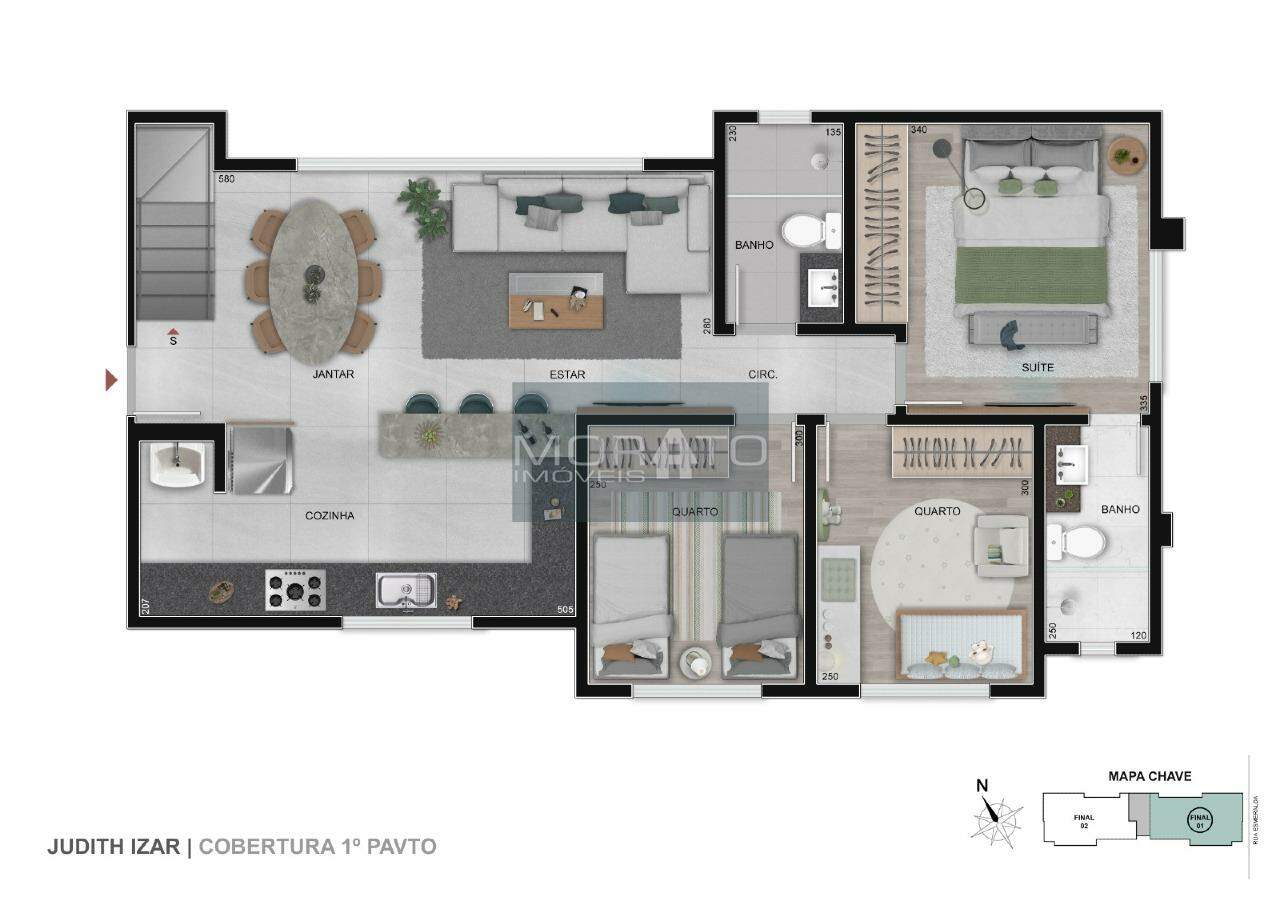 - Áreas Privativas 65m² de apartamento e 45m² de área privativa, totalizando 110m² .